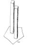 A carved-out space on the edge of the woods with a Pentagon-shaped concrete base and two “towers” representing the North and South Towers of the World Trade Center, made from concrete and steel.